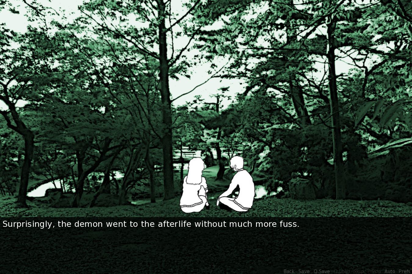 Death was routine – but not this time. It was someone we knew. A demon came, cruel and relentless, wanting my life. I refused. Yumi and I stood side by side. In the calm afterward, I realized what truly matters: keeping her safe. Lemmasoft forum]