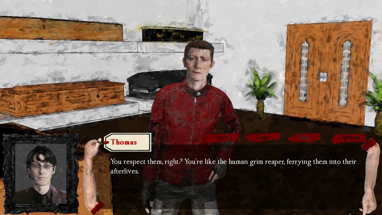 Lane's daily life as a mortician is busy; there's always new "guests" to receive into the morgue, bodies to cremate and embalm, funerals to arrange, distraught family members to comfort… at the end of the day, he just wants to sit down with his television and a drink.