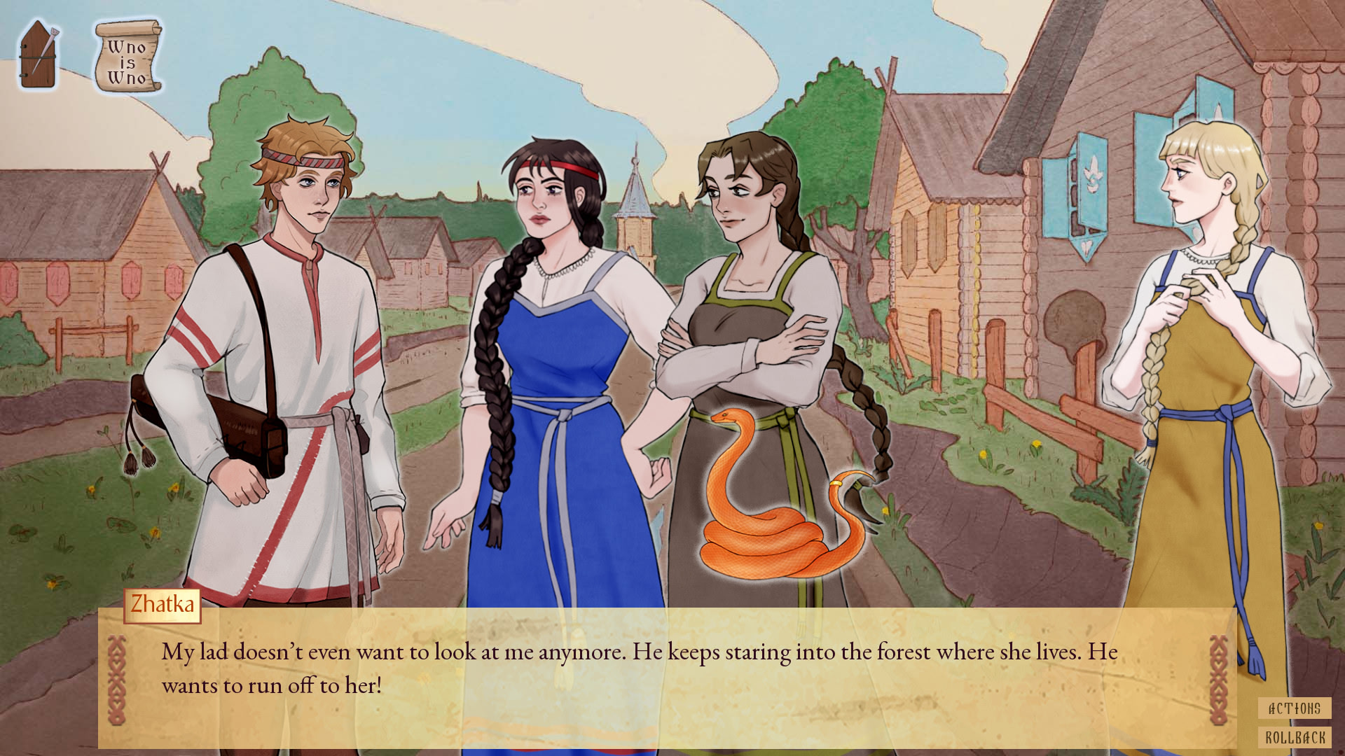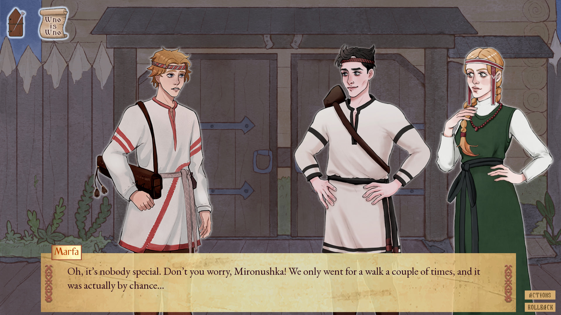 Your hero is a simple young man with a gusli, so his only weapons are eloquence and music. A single careless word can turn a conversation hostile. One well-chosen reply can set a girl's heart aflutter. Converse, play the gusli, make friends, enemies, and lovers, and lead Ivan to one of several possible endings.