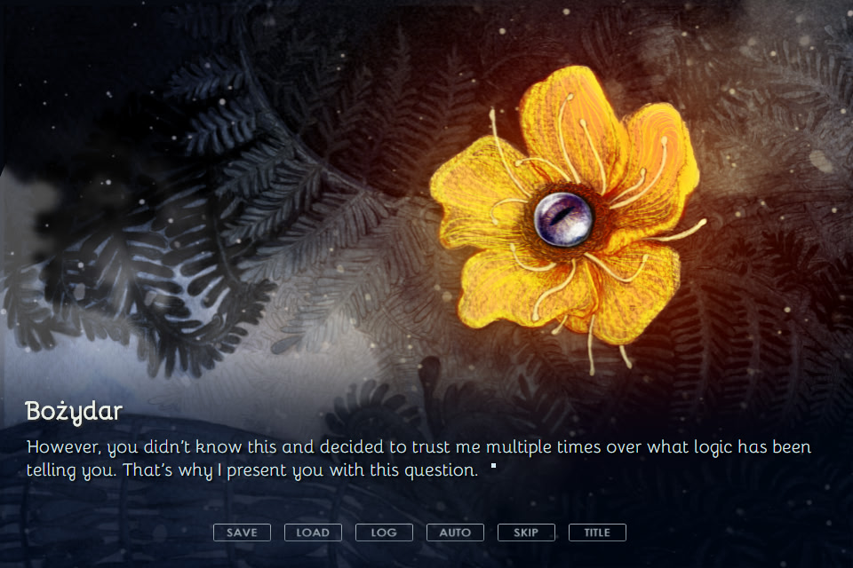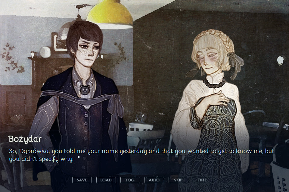 A short visual novel inspired by Slavic mythology set in a present world where monotheistic religions never existed and everyone still worships the old gods. Two romantic options are present and the game includes a glossary of terms. itch.io]