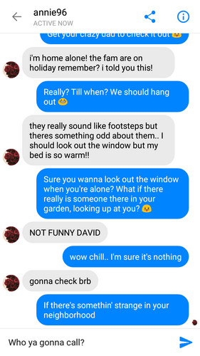 Get to know Nicole, Mike, Jake, Jenny, and Valerie. Explore various outcomes based on your decisions in a world where change is inevitable. This game features a remake of annie96 is typing... by Pascal Chatterjee, a creepy chat history that took Reddit and Twitter by storm.