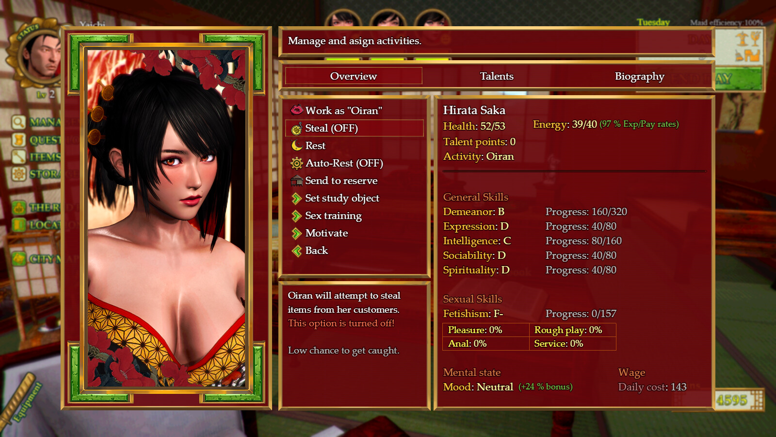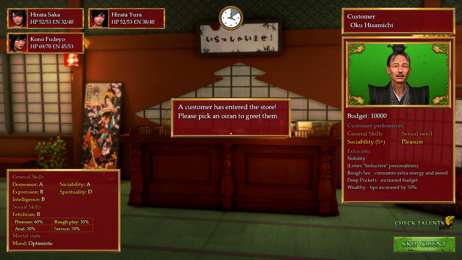 A tale of sex and revenge awaits you. Engage in torrid flings with beautiful heroines, recruit oiran to work in your pleasure house, and do everything you can to keep your girls from falling into enemy hands.