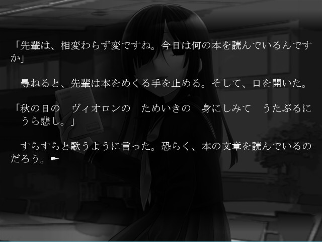 A certain senpai was always found in the library. "I'm looking for my destined partner." I talked to such a strange person when it was after school. official site]