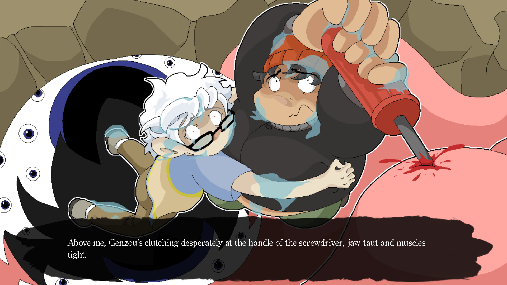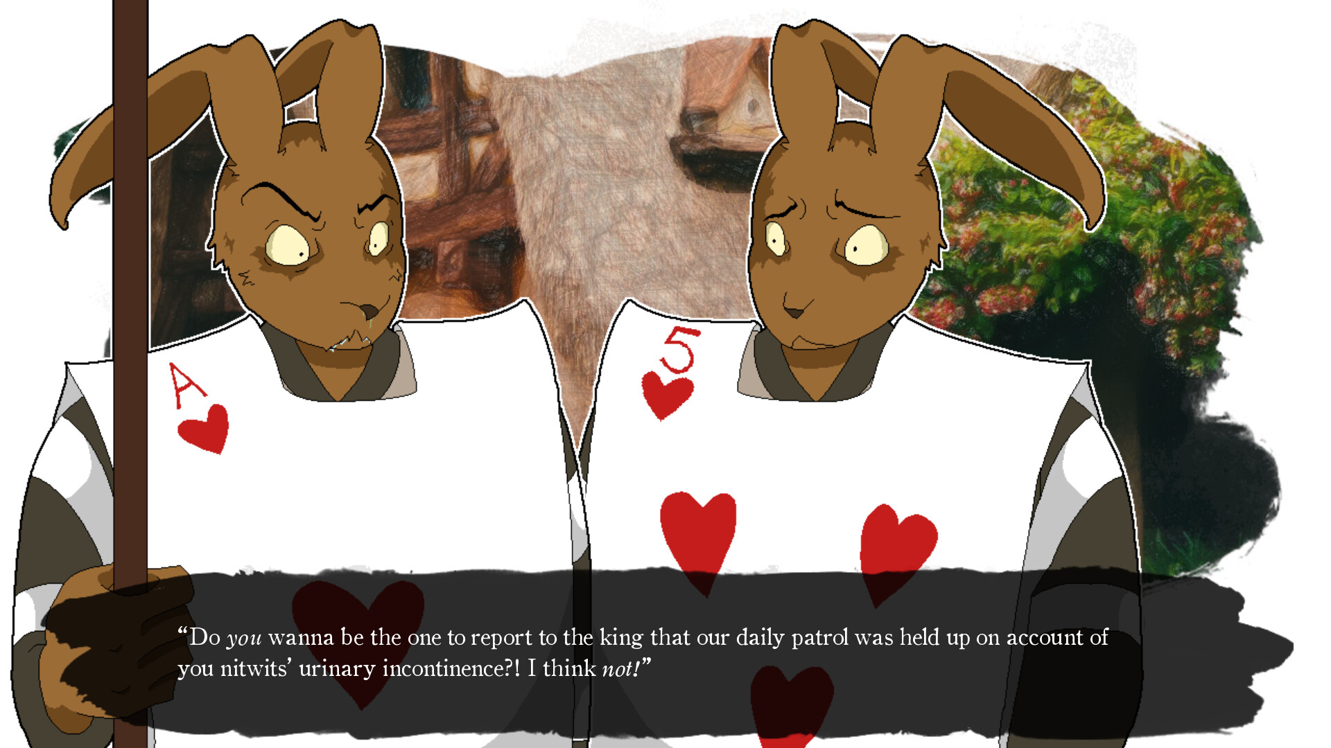 Our Wonderland is a horror-fantasy visual novel focusing on the struggles, issues, and deteriorating relationships between five childhood friends (amplified to horrific effect). It contains five different arcs, each with its own ending, and your choices affect the amount of peril the protagonist experiences (hint: how many times Iggy violently dies), as well as the final ending (hint: who Iggy ends up with at the very end, because apparently in some messed-up way, this is also the world's worst dating sim).
