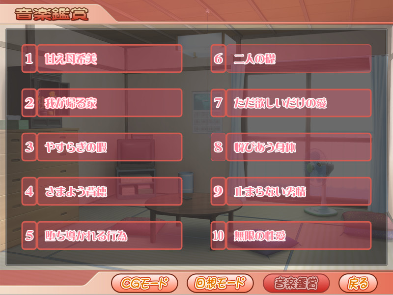 Shunsuke has sexual desires for his mother, Nozomi. She raised Shunsuke all by herself, so they live alone. He spends almost all of his time on masturbating while thinking of his mother. When the situation gets unbearable and his urges get hard to control, he tries talking to Akiko, a widow living nearby, who's also the mother of his childhood friend, Akira. Akiko wouldn't pass up on the opportunity to offer herself as a substitute to his mother.
