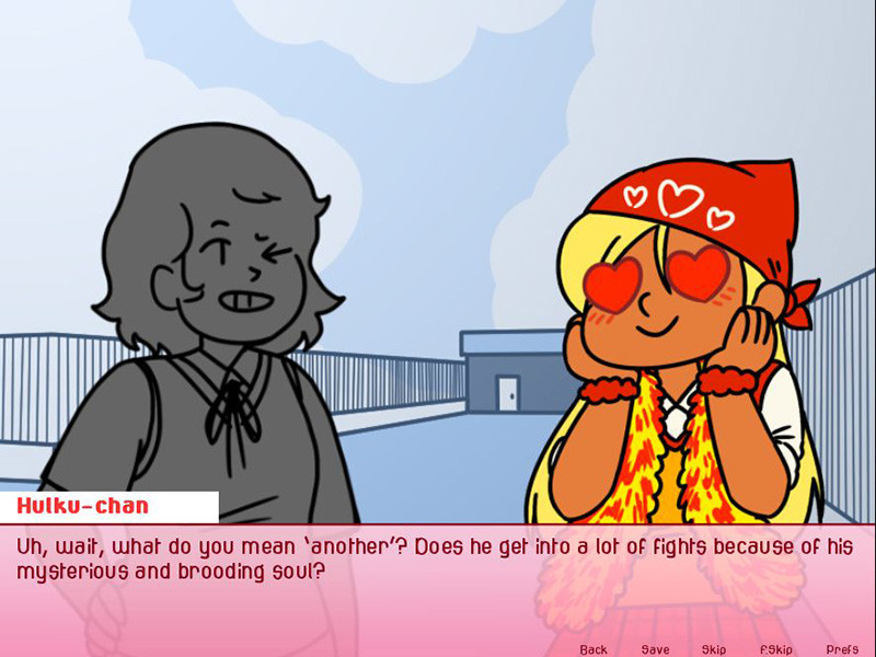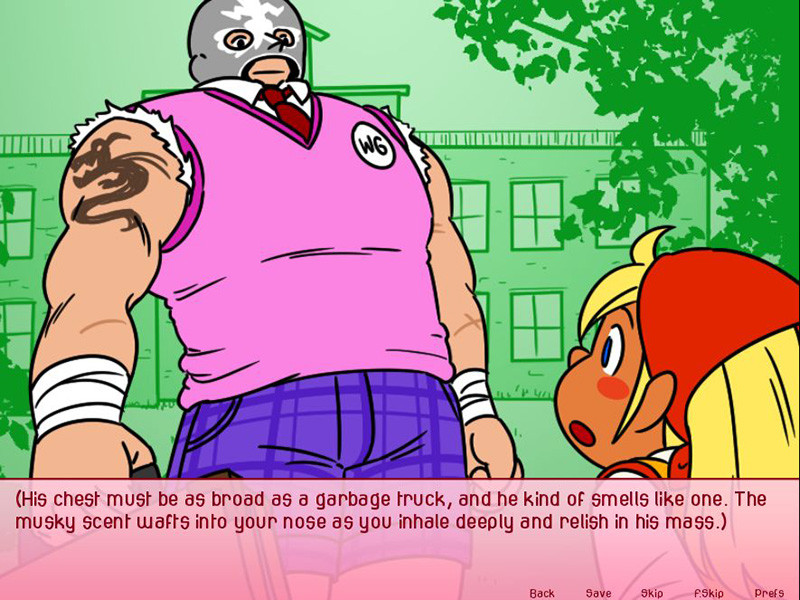 A ridiculous wrestling dating sim! Play as Hulku-chan, a young Hogan-obsessed freshman attending Wrestling School. On her way to her first class on her first day, she runs into a mysterious, 8-foot-tall sophomore named Bully Demise and begins a journey of love, stomps, and heartbreak.