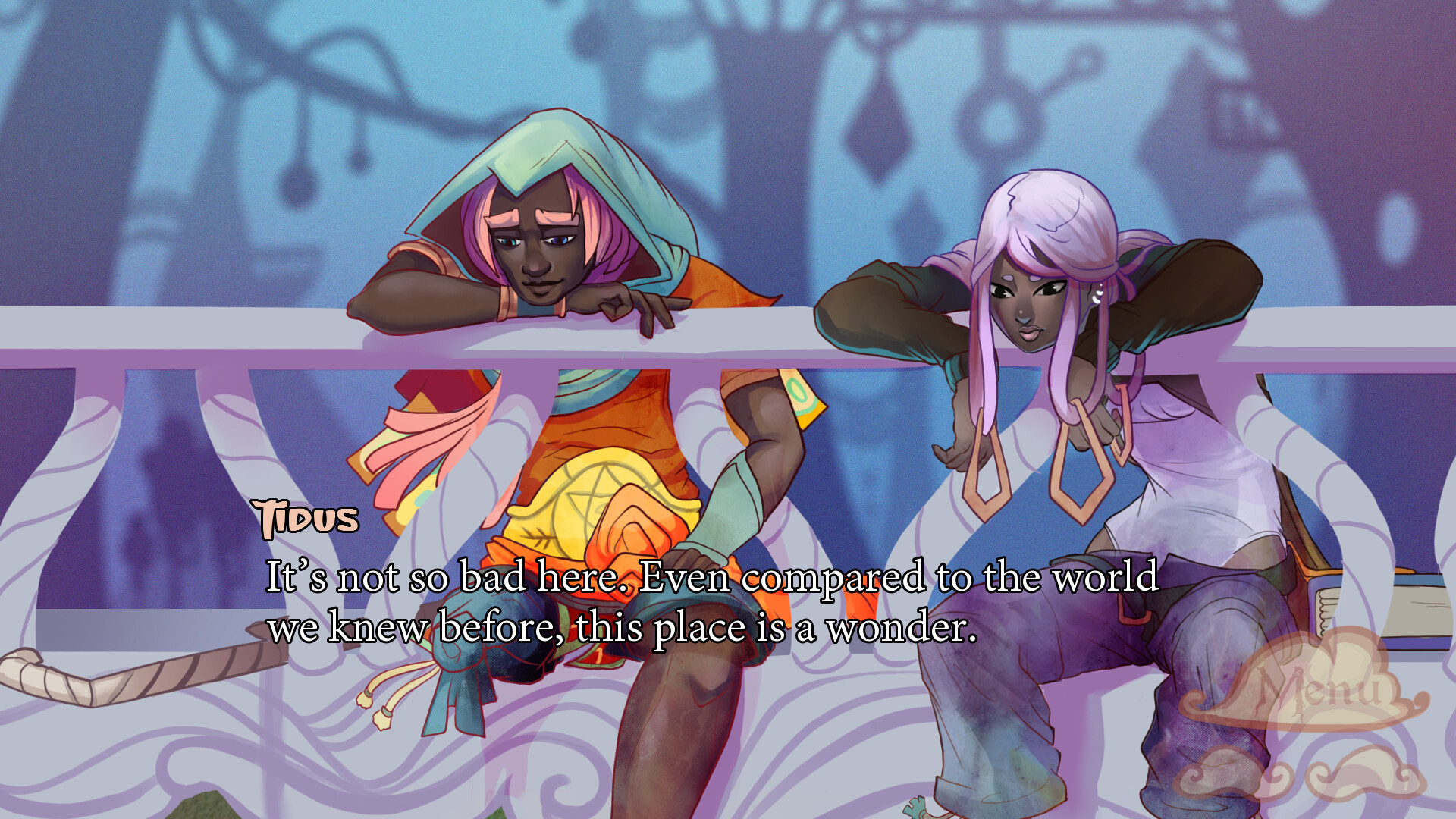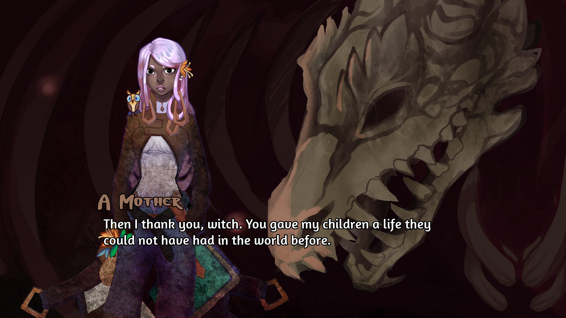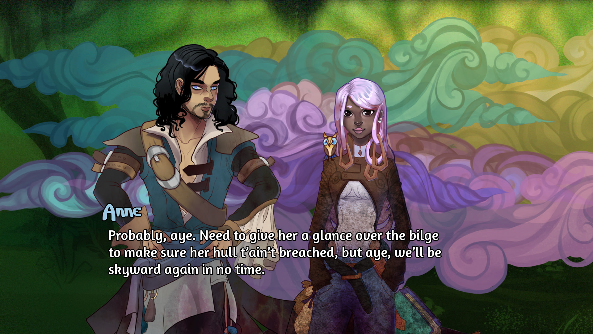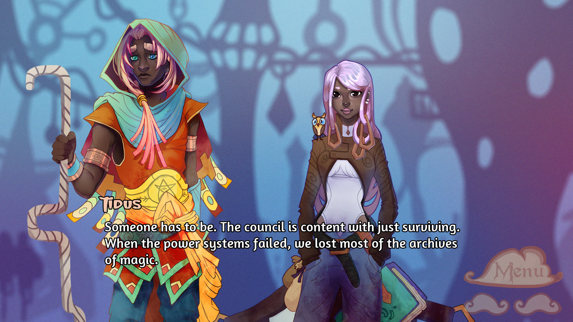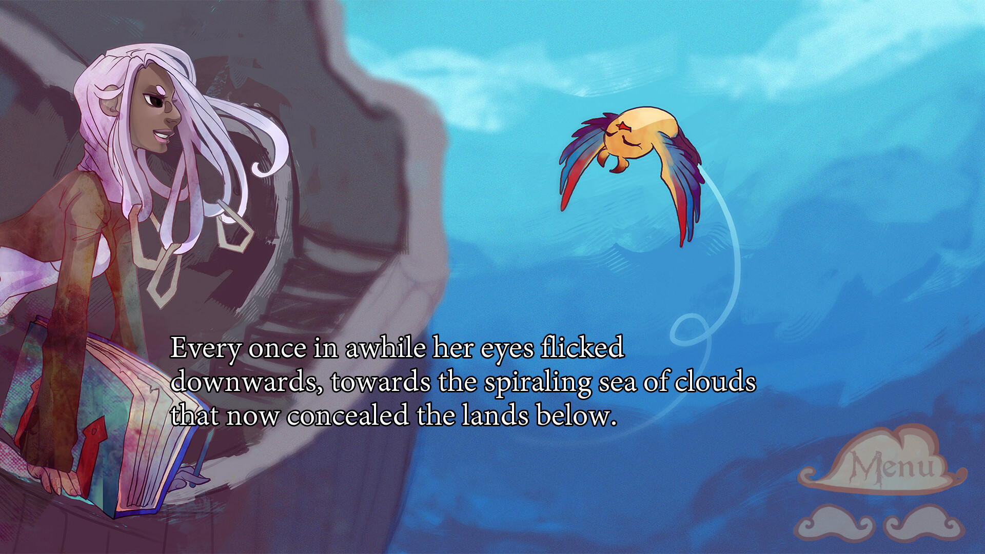 Embers of Magic is a short, adventure visual novel that tells the story of Liana the witch. It is set a few hundred years before Brilliant Shadows in the same universe. Liana takes an airship down to the surface of the dangerous and corrupt earth beneath her flying city home.