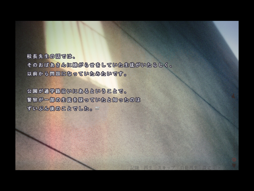 Y, a member of the newspaper club, was forced by his senior to write an article on scary stories. It took place in a dusty, abandoned room far away from the usual classrooms and clubrooms. While waiting for the remaining person to arrive, fearful scenes begin to unfold...