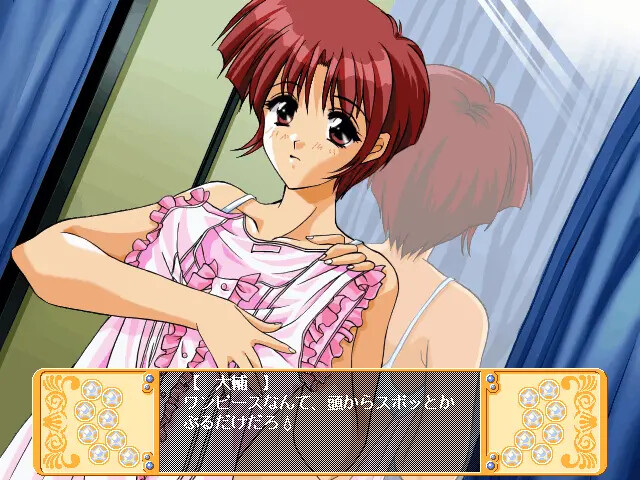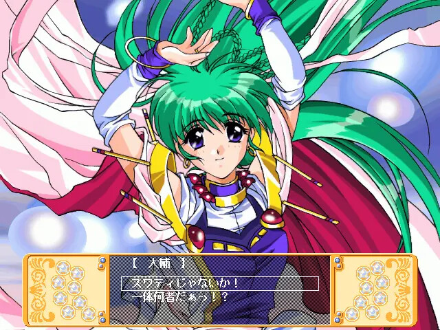 You are one single lonely guy who wants a girlfriend. And when you went home a huge explosion occurred. Inside your room, you saw seven little midgets: the Japanese Gods of Luck. Along with them was a beautiful girl with green hair and she gave you something which she called the "Star of Guidance". The next day you ran into some cute girl, and mysteriously, the "Star of Guidance" glowed...