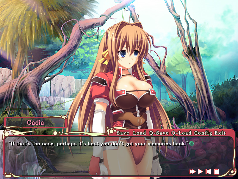 Waking up in the forest with no memories, the knight Milles finds her way to the land of Schnarb -- where peace is maintained by offering sacrifices to the local god Diva -- and meets the bounty hunter Cadia. The two hit it off, and Milles decides to make her living as a bounty hunter.
