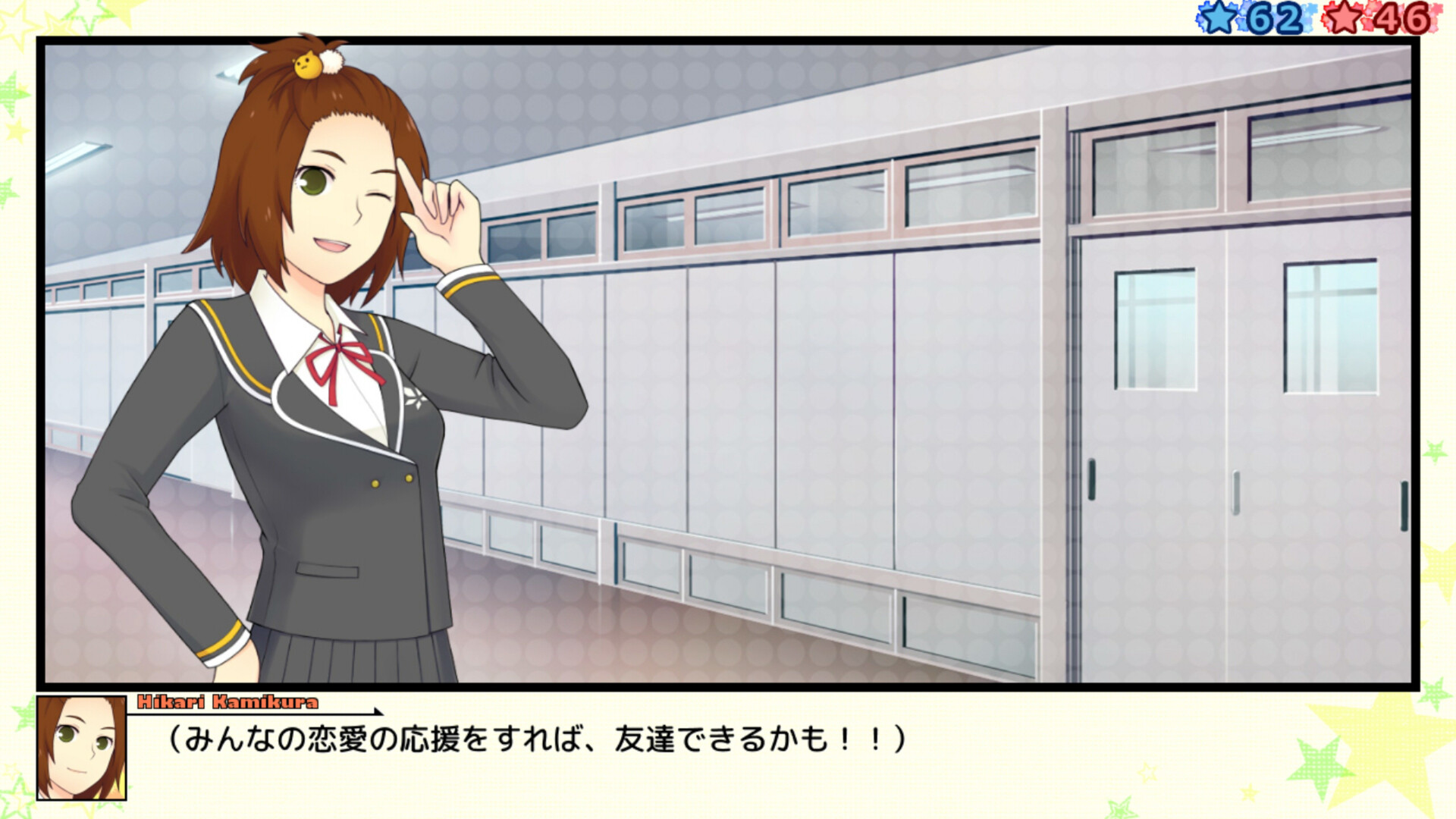 A high school adventure game with 30 high school student characters. Main character "Hikari Kamikura" struggles at Heisei High School to break through the current situation where she has no friends! yox-project]