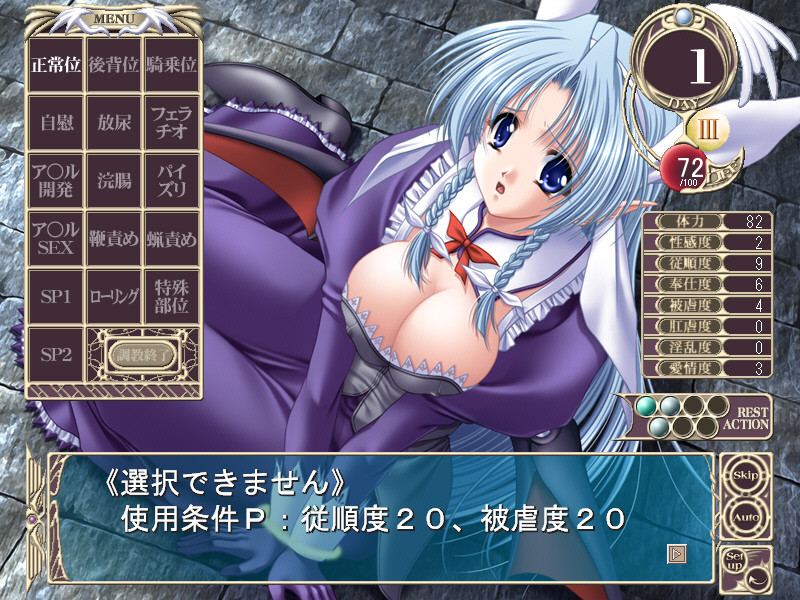 There are a total of 4 demon daughters for your sex-slave training: 1The quiet and proper princess of the duke of hell. 2 The devil's defiant daughter. 3 The devil's quiet shrine maiden. 4 The daughter of a royal and very exotic family line, who is still a virgin: 4 very different types! It's up to you (the player) to decide if you will submit these girls to the torment of sexual slave-training to become obedient to your every wish, or whether you will treat them with love and compassion.