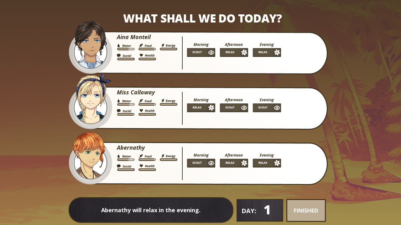 Stranded Hearts is a lesbian romance/survival sim. Three completely different women become stranded on an uninhabited island. As Aina Monteil's past unravels amidst the harsh survival situation, will she be able to form a genuine connection for the first time in her life?