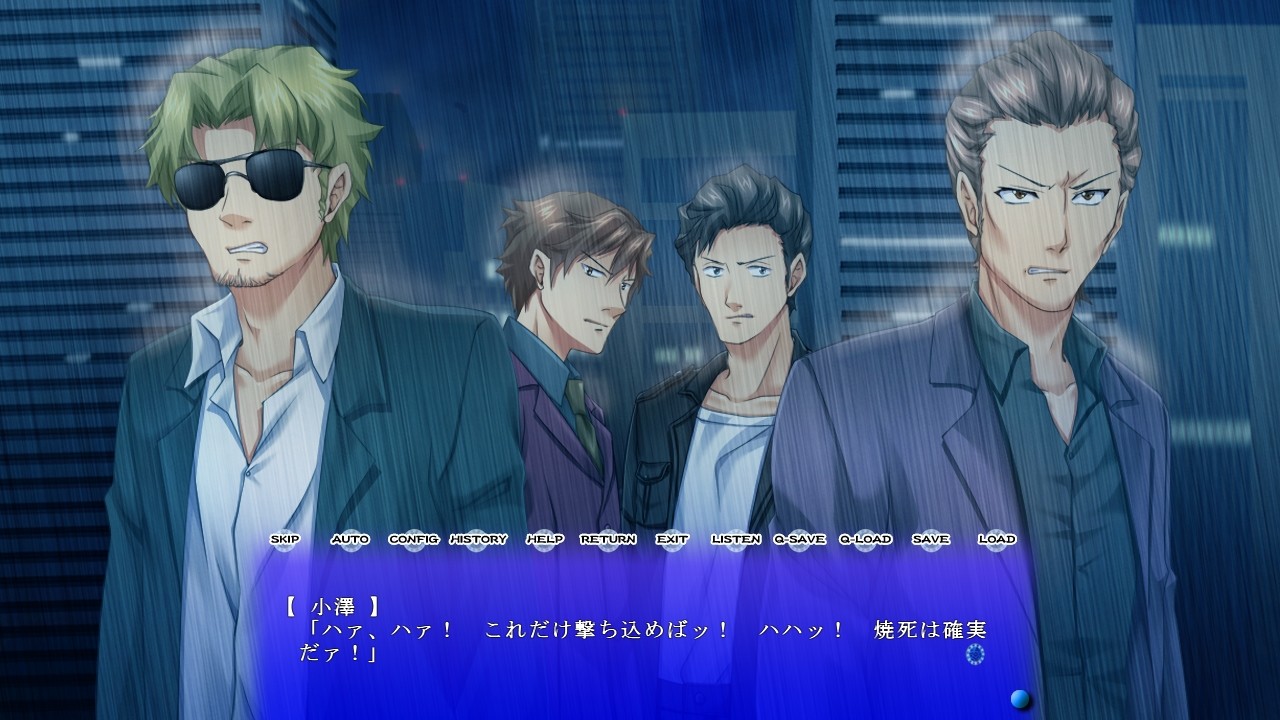The morning after a terrible bombing incident in a busy metropolitan area, Kenmei Tokiwa wakes up on a nearby shore surrounded by three strange figures and unable to even remember his own name. One of his captors promptly points his weapon at Kenmei, saying, "Sorry... but there's no time."