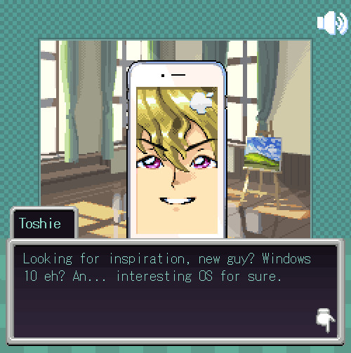 Doki Doki Compatibility Quest 3 is a visual novel playable in a browser, created to promote the release of Minecraft Pocket Edition v0.12.1 alpha. Players follow Winsten, a Windows 10 PC, as he attends his first day at Device High, a school for portable technology. There, he can meet and interact with Toshie the iPhone, Andy the Android device, and a Windows Phone named Dossie.