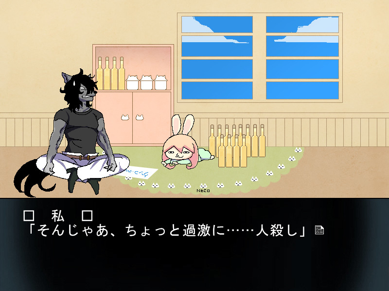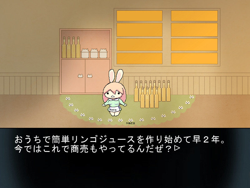 Little rabbit girl Kohy spends her days in the rabbit village eating curry, making apple juice, and playing with Mr Wolf. A harmless pixel art visual novel.