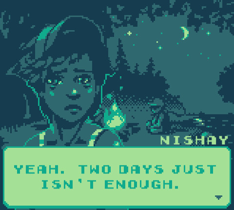Onemore Night is a visual novel created for the #gbjam 4. A magical summer-themed game about friendship, love and getting drunk in nature. Three friends embark on a two-day camping trip before their last year of school begins. A trip they never want to end. They want to stay one more night. itc...
