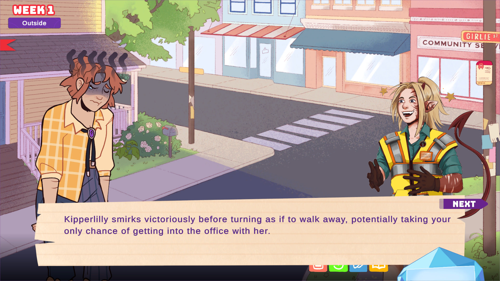 "Hey, Girlie!" is a free visual novel dating sim released on May 17, 2025 for International Day Against Homophobia, Transphobia and Biphobia. Play as chosen cleric Kristen Applebees and attempt to romance favorite sapphic characters from Fantasy High, including Tracker, Gertie, Kipperlilly, Fig, Lucy, and Naradriel.