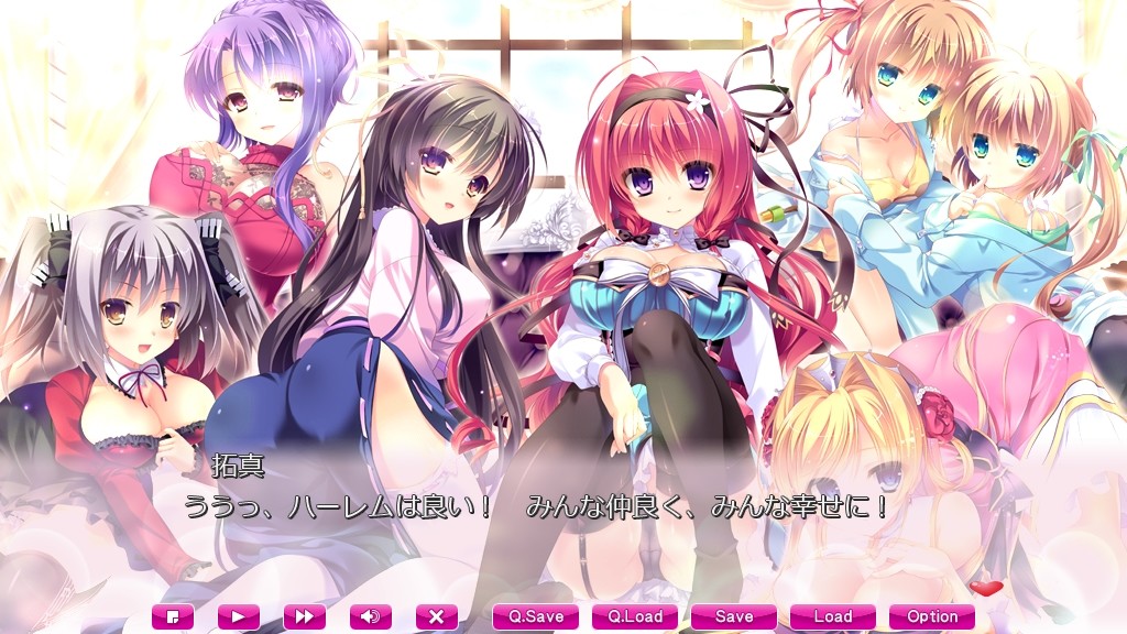 This is the first title by Pajamas EX, in collaboration with SkyFish. Takuma transferred into the famous private school Saimei Gakuen, which is attended by the richest girls. What sets him apart from others is that he will always come to the aid of a troubled person, and he loves girls so much that he wants to make his own harem. Naturally his declaration was first met with disdain, but all the girls slowly warmed up to his kind nature and actions. Soon, he had a harem of 7 girls living with him.