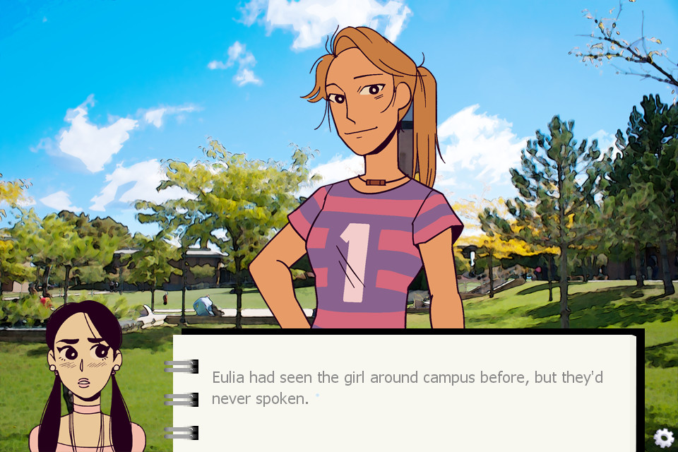 Eulia is a college freshman who was just looking to do some drawing for class outside. Until she meets star soccer player Mel, and can't stop thinking about her.