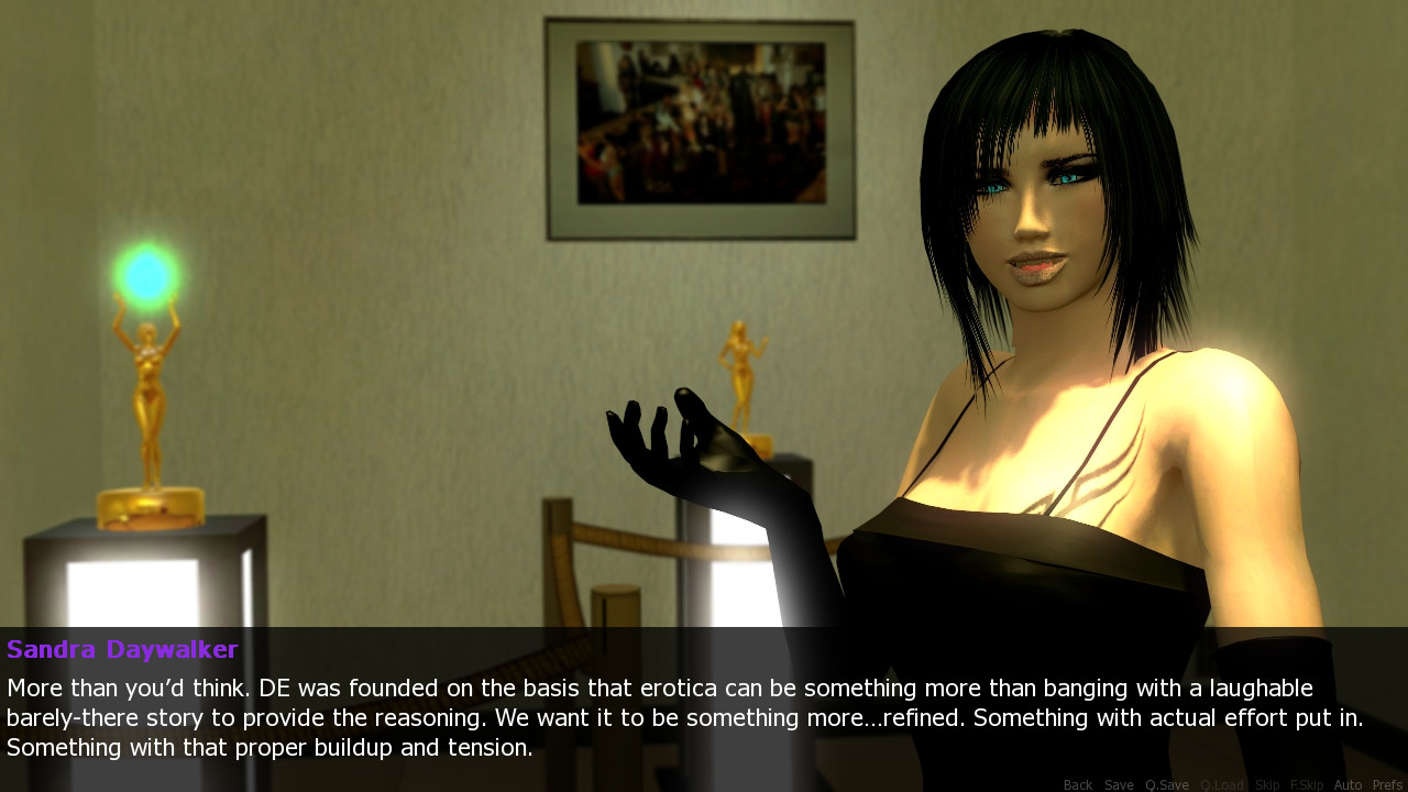 Play as Dean DeMasso as he sneaks into the ultra-exclusive DE Clubhouse and has his fateful encounter with Sandra Daywalker! Make the right choices and you just might get laid; but be carefully, take the wrong step and you risk getting caught by the guards! Features 720 HD, 3D animated sex scenes, and seven different endings!
