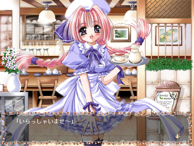 A collection of short stories chosen from the cafe menu: 1. Last mother 2. Dokan at your warehouse 「お蔵でドカン」 3. Chuki Choki Chuki Story 「ちゅきちょきちゅきなものがたり」 4. Distant blue sky 「遠い青空」 5. Voyeur Dog 「盗撮犬わおーん」 6. Wolf King 「狼王」 vndbreview]