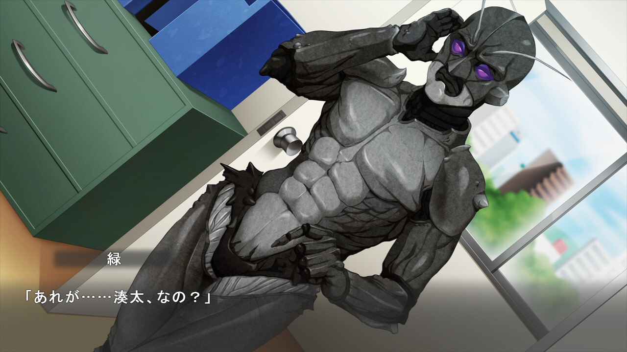 A strange humanoid figure is fighting a lizard monster that is much larger than a normal animal. The unfamiliar person wins, and Midori shuts her eyes tight, thinking that she is going to become the next target. But when she looks in front of her again, she sees a naked woman, the same one that was with her boyfriend earlier.