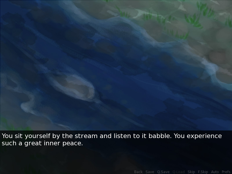 "You're walking in the forest. You don't know particularly why you're here, but it's a nice enough day, so that aspect of this stroll doesn't quite bother you."