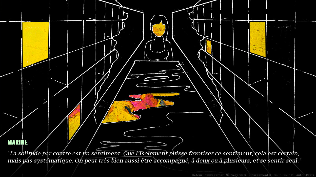 Lynn, a troubled young woman, is trapped in an auditorium. She doesn't have any food, any water. What she can do however is understand herself. Try to make sense of her destroyed and abstract psyche.