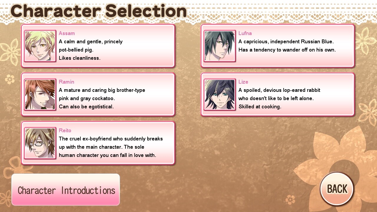 When you return home rejected the evening after being broken up with by your boyfriend, waiting for you are four handsome men...who are actually your pets! Cue a fierce battle for the love of their beloved (former) owner -- you! But watch out for the reappearance of your ex...