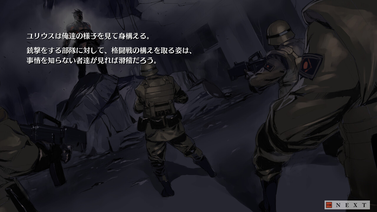 Rakuen no Shugosha taking place in future where a small percentage of the population - both animal and human - have gained supernatural abilities that make them so dangerous that they rendered most modern weapons obsolete. When the story begins, you are thrown into action with a small unit of United Nations soldiers who are sneaking through the ruins of a dead city for the purpose of killing the 'most powerful human in existence'.