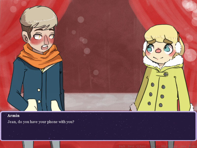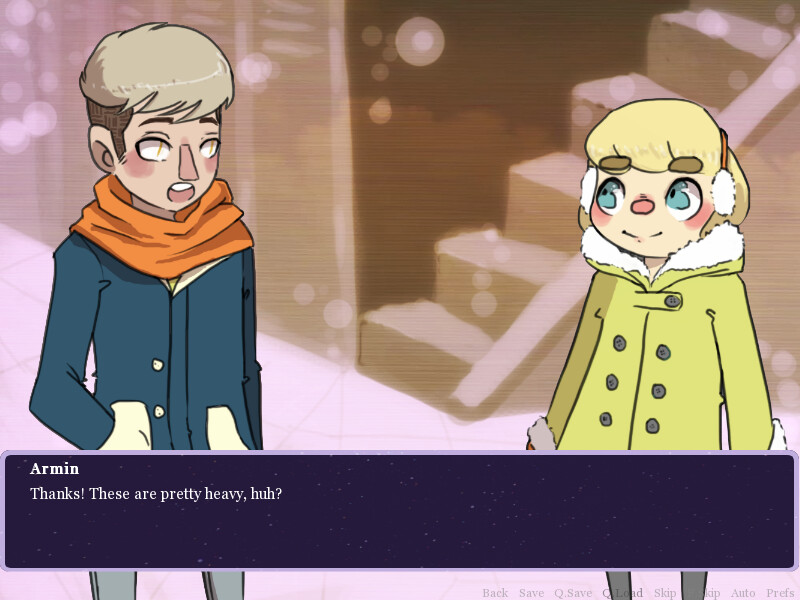 Jean and Armin are stranded after school during a blizzard. An "Attack on Titan" Jean/Armin fan game.