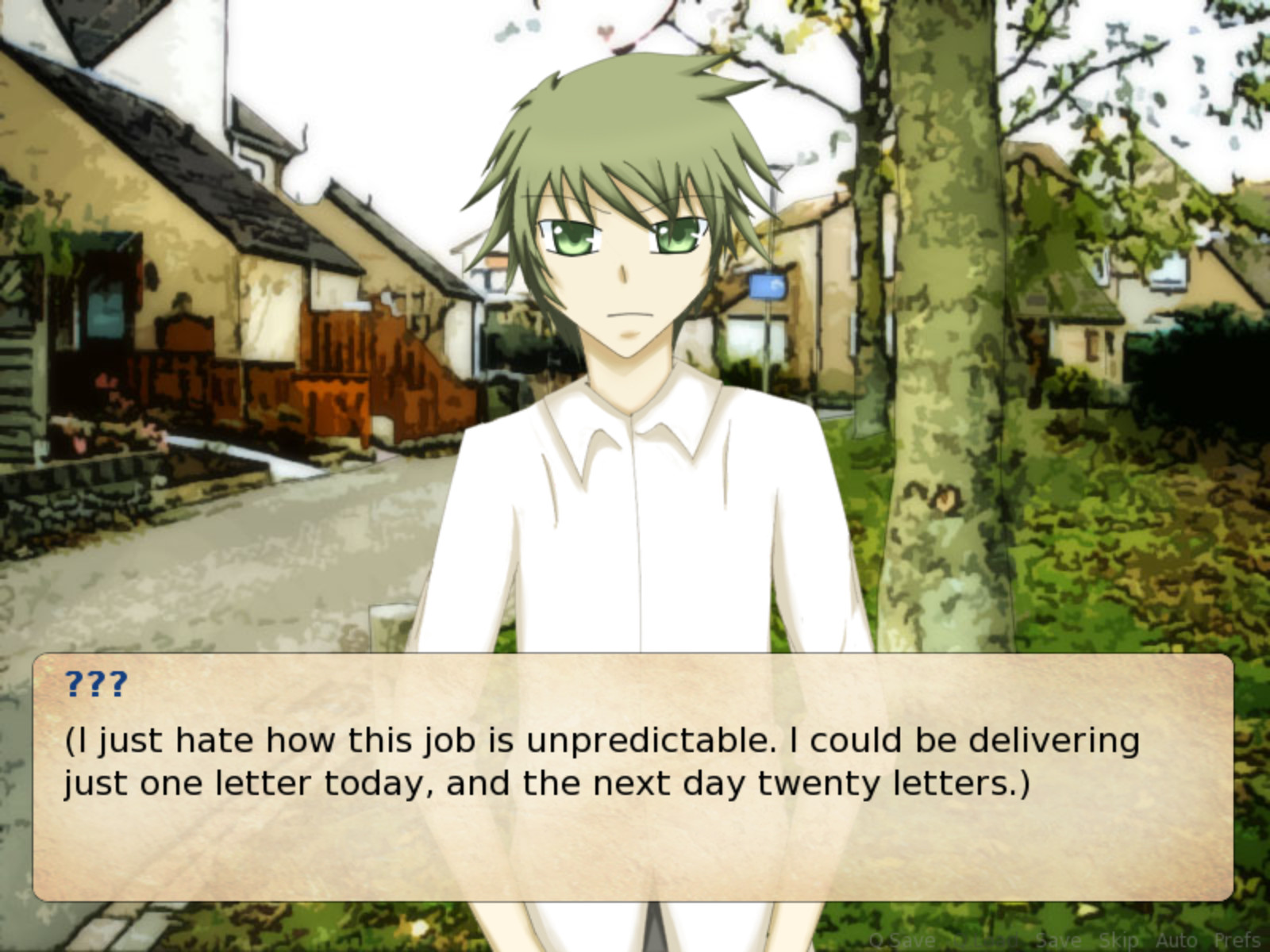 Letters for You tells a story about Tegami, a special mail carrier, and Sayaka, a girl who stubbornly refuses to receive anything he delivers. Tegami's determined to get her to receive something.