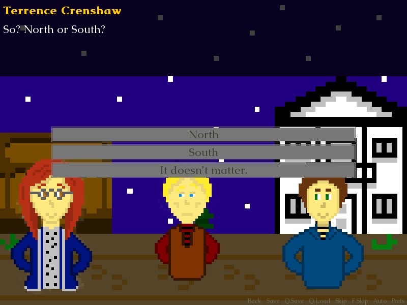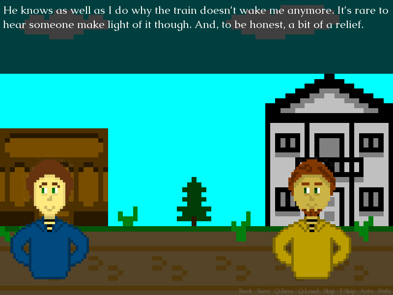 Lull is a macro-narrative visual novel set in a town where sound has ceased to exist. Beginning as the town is settled in 1865, players' choices will affect the culture and politics of the town throughout the generations as they adapt to a silent world.