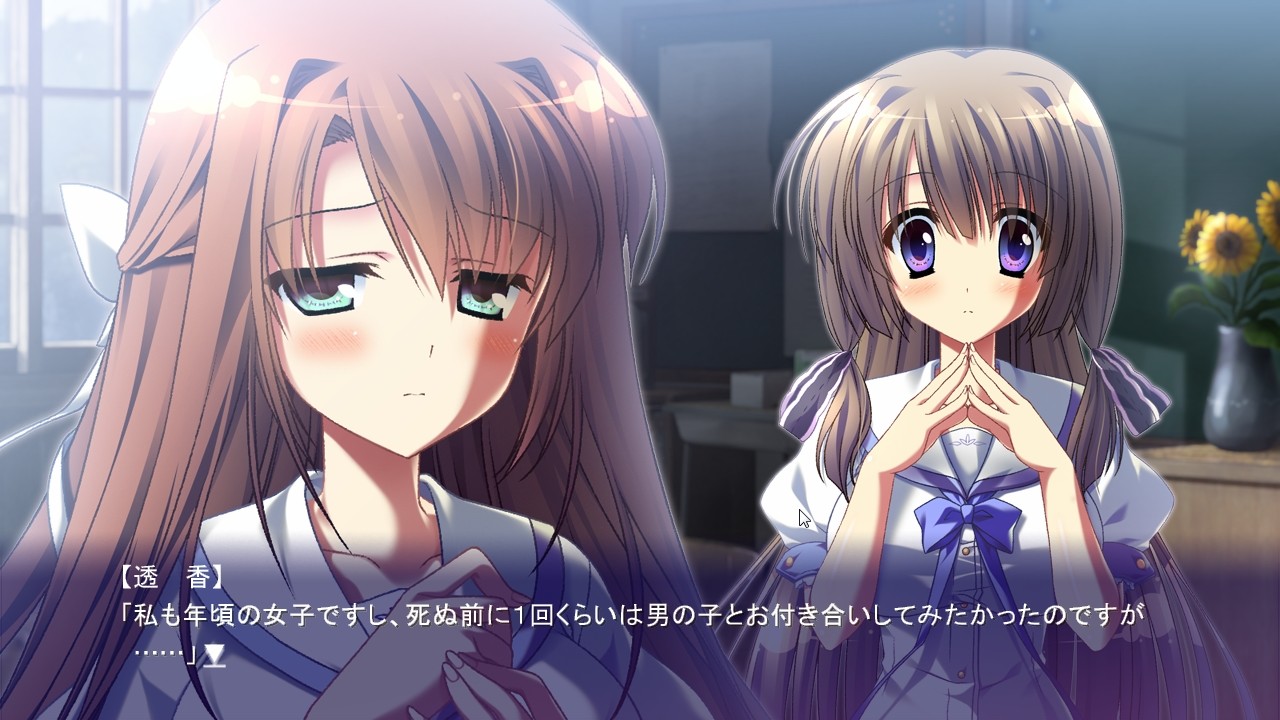 Their distant relative Sui greeted them and showed them around the school, where they met the bookworm Ayame and Touka, who had an angelic smile. They are the only students at the school and this suited the siblings just fine since they wanted to avoid contact with people as much as possible. Gradually, he learned about the ‘pain’ that each girl had. Sui had an injured leg, while Ayame suffered from her parent’s deaths in a traffic accident. His own sister Ren didn’t trust anyone, relying only on him. However, Touka’s pain is on a totally different scale – just touching her had pain shooting through his body. This is the beginning of a tale of love and sacrifice.