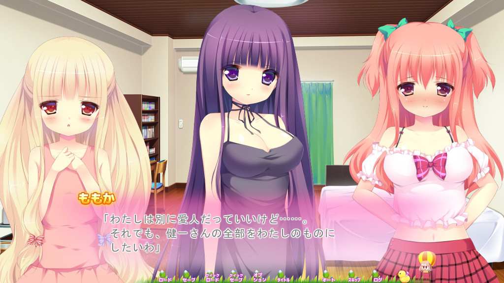 This is the Puchi Parfait’s debut game. One morning, Kenichi was pushed down on his bed by his imouto Niina and three other girls An, Yuriko and Momoka. They were unhappy that he had been delaying making a decision on whom to go out with. However, he admitted that he was indecisive and loved each of them equally. They made him promise to go on a date every weekend with one of them for the next half year and go out with the girl who he likes the most. “I’ll definitely become your girlfriend, no matter what ecchi method it takes!”