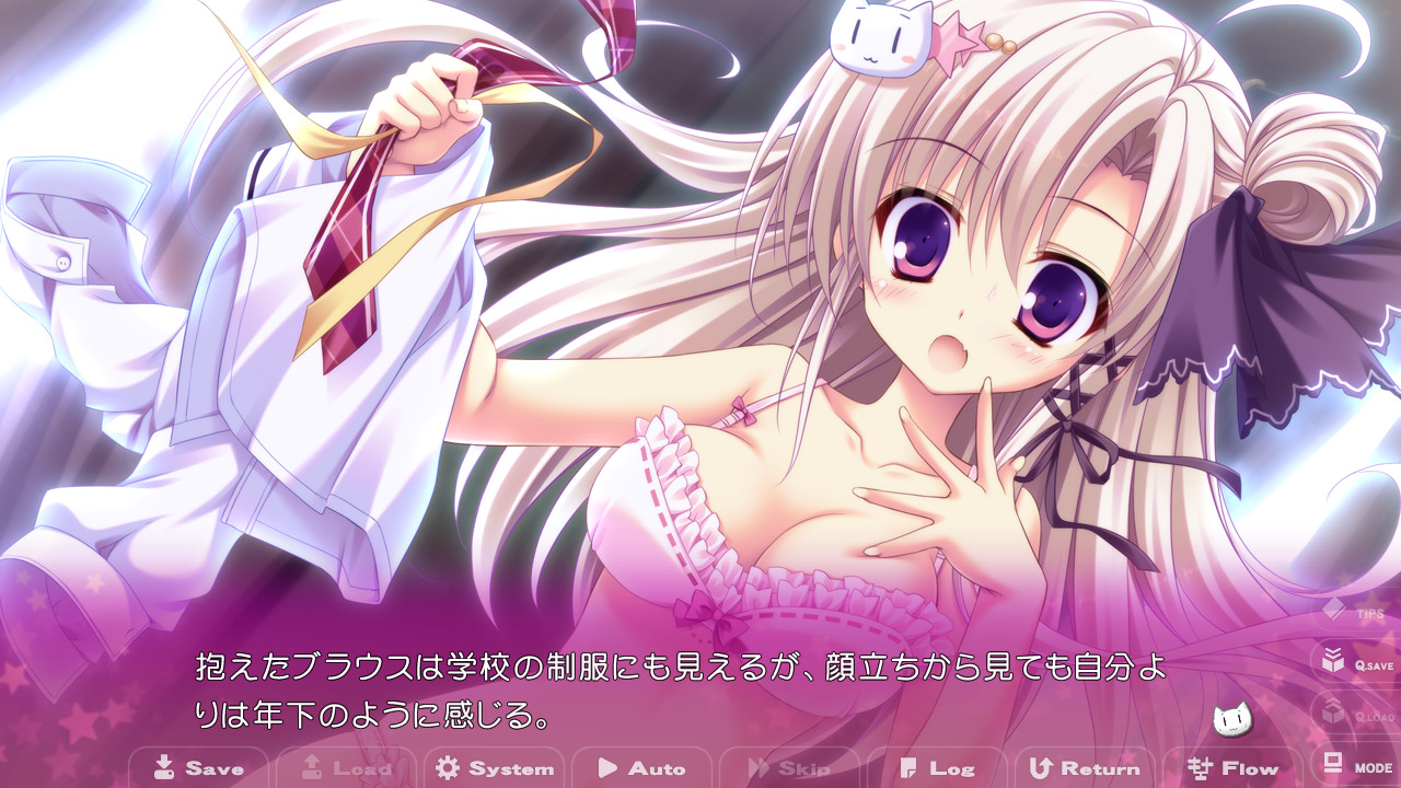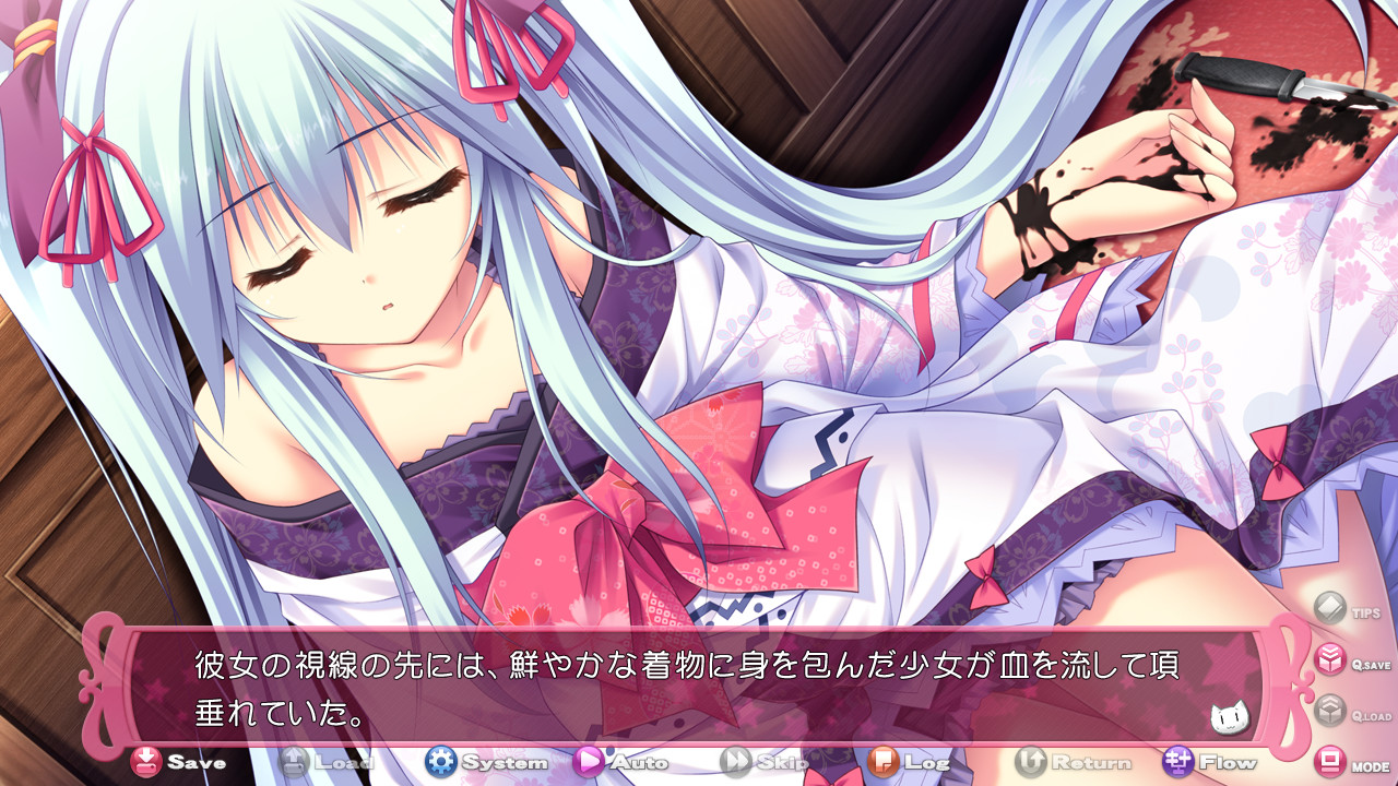 The game is compatible with tablets running Windows 8. It features two new systems: the ‘Fortune Divide System’ where you could use a sword in the interface to ‘cut’ the screen and reveal new choices (swipe the screen for tablets), and the ‘Detective Mode’ where you search for clues to solve a task (although you could always right click for the answers). There’s also a ‘touching mode’ where you touch girls and you can hear their reactions. At first, it feels that this gameplay is a throwaway, but the use of the sword is actually vital to the progress of the story. There’s also a secret notebook and flowchart to help you along the way.