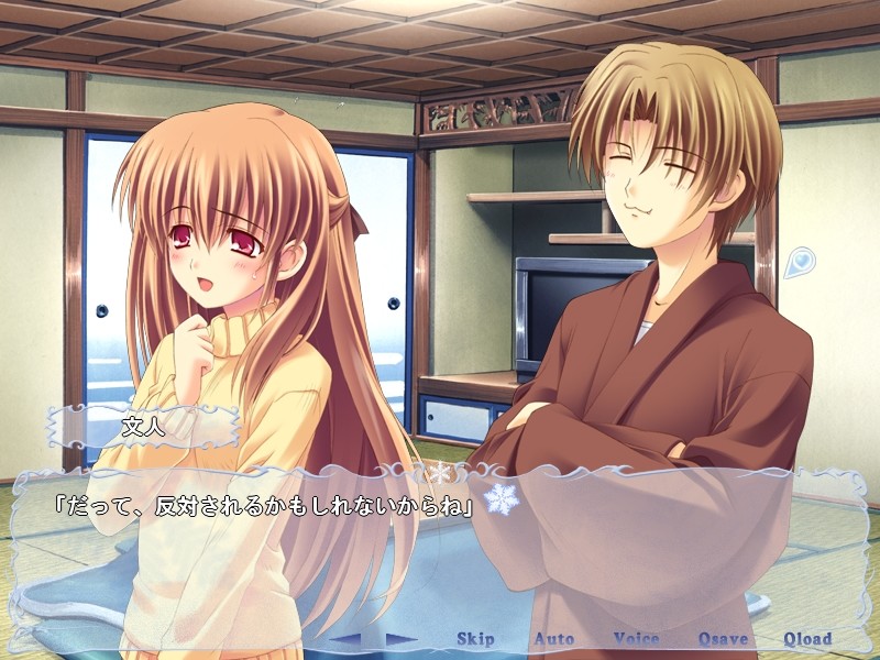 This light-hearted, high school eroge surrounds the exploits of a soon-to-be non-average student named Kyoichi Morikawa. The son of the odd paring of a nurse and a poorly-selling novelist, he’s been living his life in mind-numbing virtuosity. One auspicious day his father returns home after running errands with a girl (about Kyoichi’s age) claiming to be orphaned. Being the good Samaritan, our hero’s father adopts the hapless girl. Now Kyoichi must explain the extraordinary circumstances to his one and only friend. Furthermore, seeing the main character with a girl has caused several of the female student body to take notice of him...