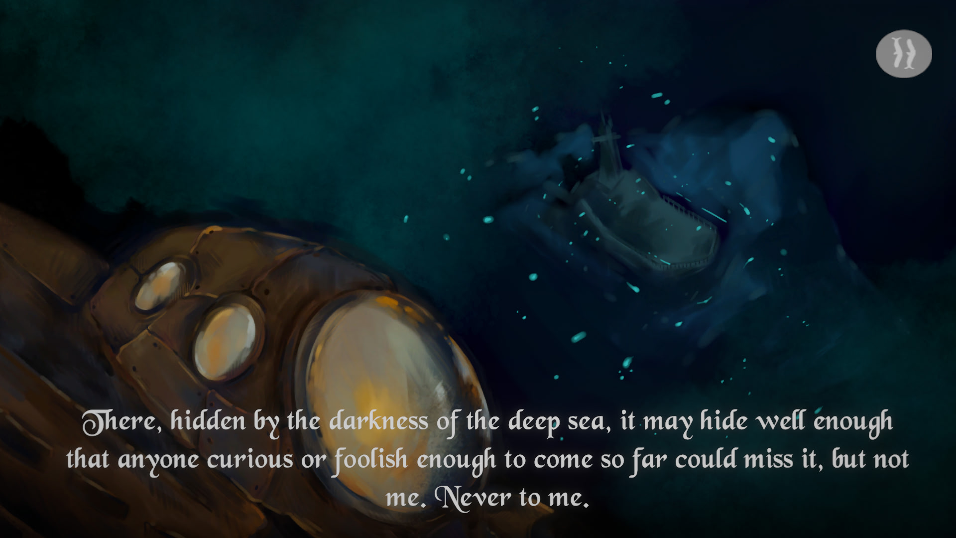 The light shining through the water creates dancing ripples, lines of white and yellow illuminating fishes dancing around in groups, small bodies colliding in search of food. What curious creatures they are, accompanying the submarine as it starts to go down, down, down… Itch.io]