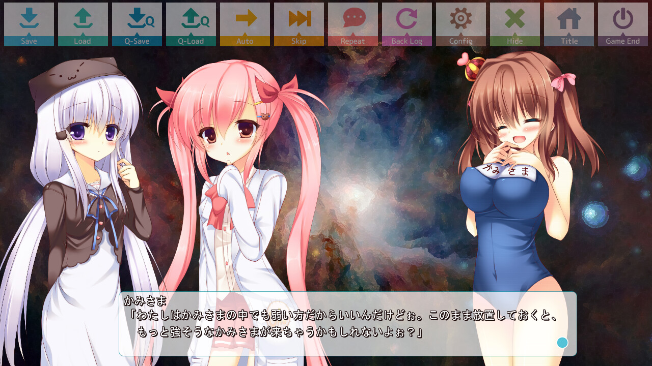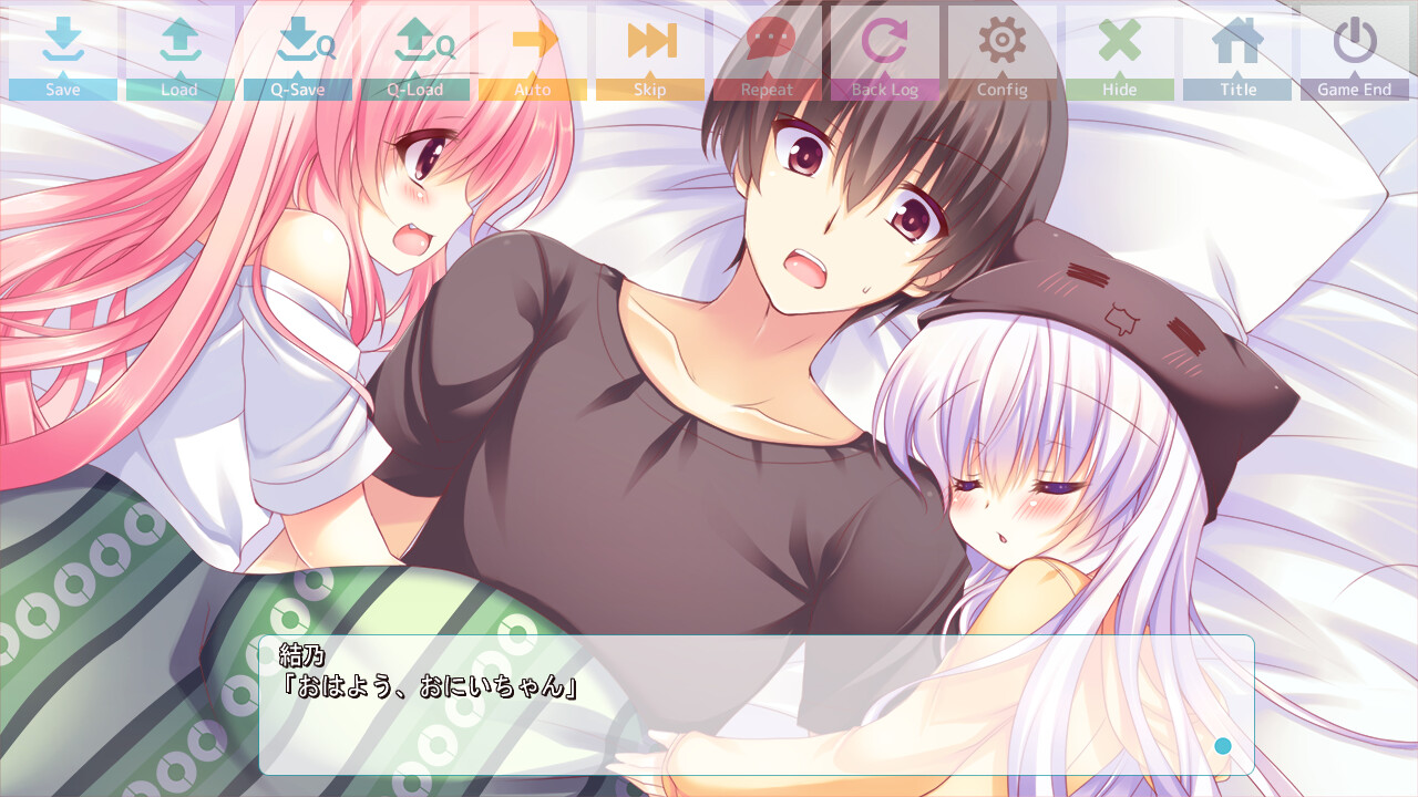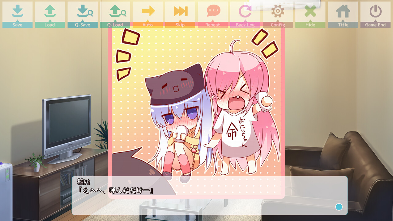 This is doujin circle initial’s debut work. The ultra-siscon Haruto was brought to a new world with his two imoutos Yuno and Chika. A sukumizu-clad girl who called herself ‘Kami-sama’ had brought them to Sistopia and bestowed an icharabu gauge on Haruto to grant his wish. He found it awfully bizarre...