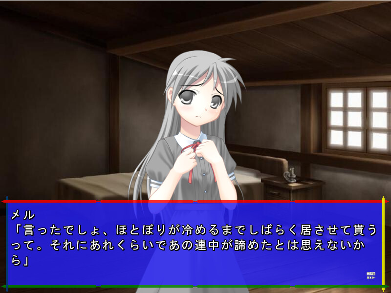 Protagonist Akira Kido and his platonic friend Sanae were into a VR game called Fantasia. Akira met a young girl named Meru in the game, who appeared to be fleeing. He traced her to the gates of a city where Sanae was waiting. DLsite English]