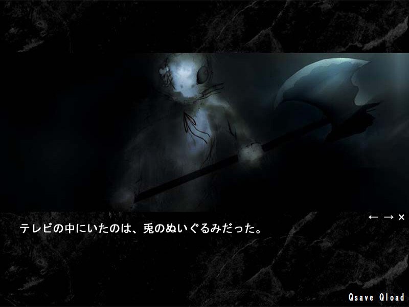 The protagonist, though he lives a boring, mundane life, is antisocial and rejects others. One night, he encounters a stuffed rabbit wielding an enormous axe in a nightmare.