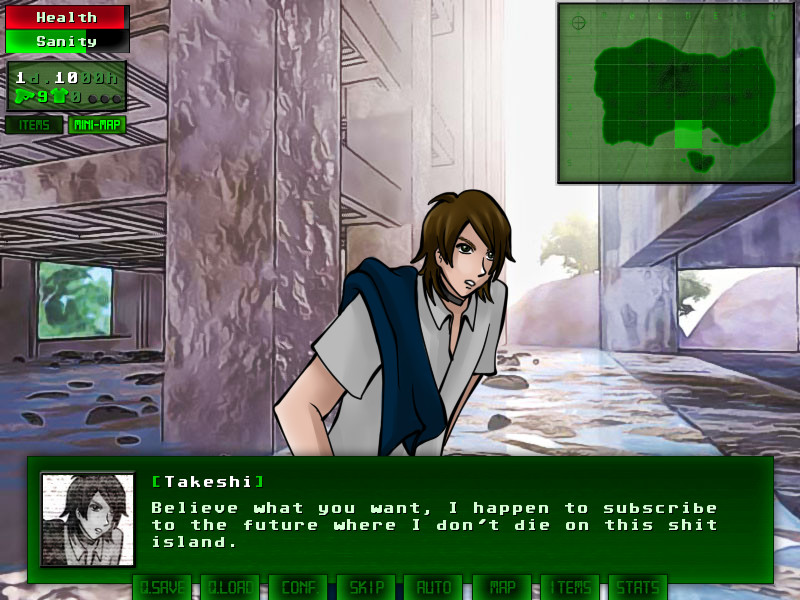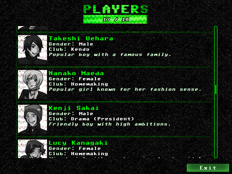 As the character Shinobu, put yourself into your very own Battle Royale-inspired murder game. You will start the game with some food rations and a random weapon. You can get anything from a shoe to a flame thrower. Try to kill everybody within the set time limit, or find if there's another way off...