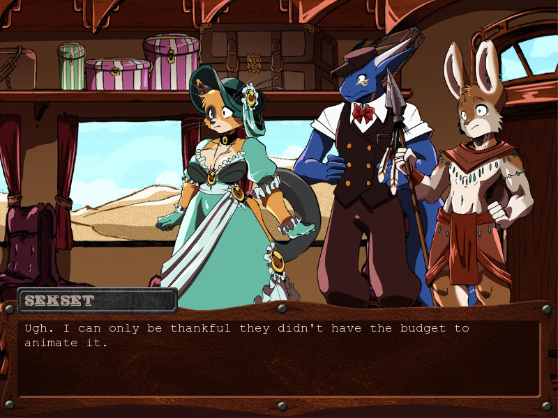 We follow the story of a new hero, Sovy Wildfoot and his rival - the beautiful and deadly Vedika Vandersmudge - on a train ride across the untamed deserts of the west. Sovy is all new to the Puppy Love games, but we've seen Vedika before when she premiered as the masked vigilante in Puppy Love I!