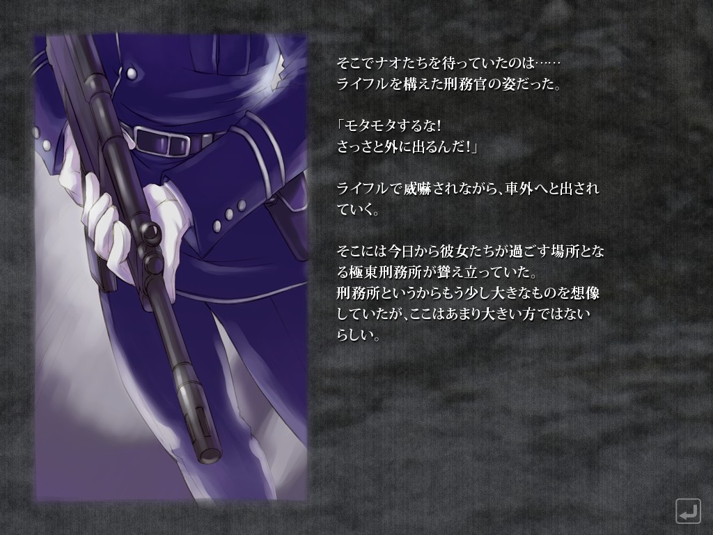 A Far East prison is built during the war. Female prisoners there are forced to work hard every day. Nao Kamijo is a former secretary-general who sentenced to jail for attempted murder and brought to this facility. It begins with the physical examination of shame, but various sexual harassments repeat over and over under pretext of what officers call "prison work". Her spirit gradually wanes till a certain encounter that changes her mind.