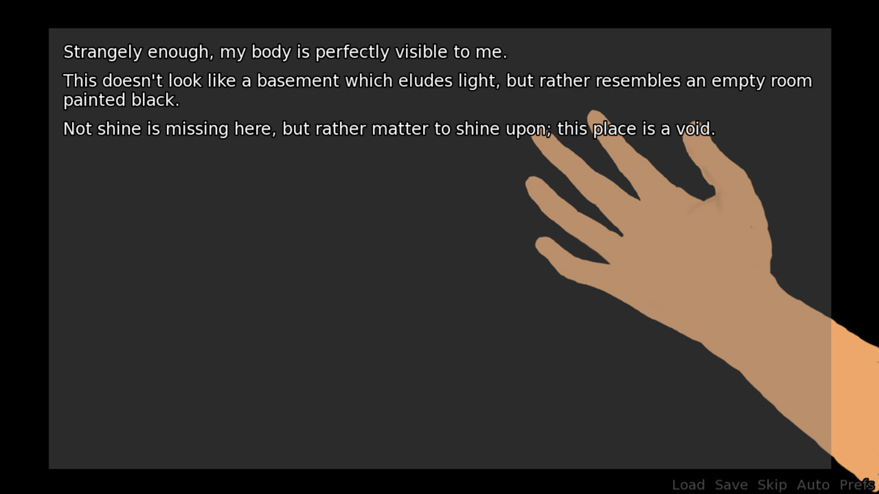 Waking up in a world composed of pure blackness, Vincent seeks to asset his eldritch environment. Despite how otherworldly the situation feels, all answers regarding that dark realm are buried deep inside Vincent's cognition. It's now up to him to unearth that knowledge, and to decide whatever to stay in that cold stillness, or to reach out to the blazing uncertainty awaiting outside.