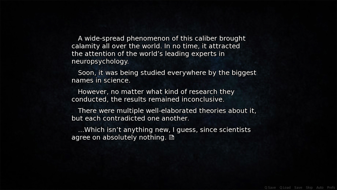 After a surreal, bizarre dream, I wake up to discover that the world is not as I remember it any more. Everything is surrounded by an unnatural, illogical sensation of comfort along with a rational, obscure feeling of discomfort. Will I be able to figure what’s going on? Will I ever find the roots ...