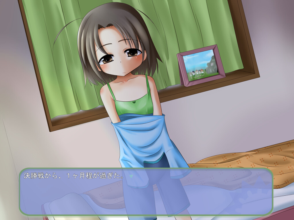Girls und P*nzer's Team Rabbit leader Azusa-chan stars in her own ADV style novel eroge. The main contents are yuri/girls love and masturbation. There aren't any choices, it's a linear story simply for passive entertainment. DLsite English]
