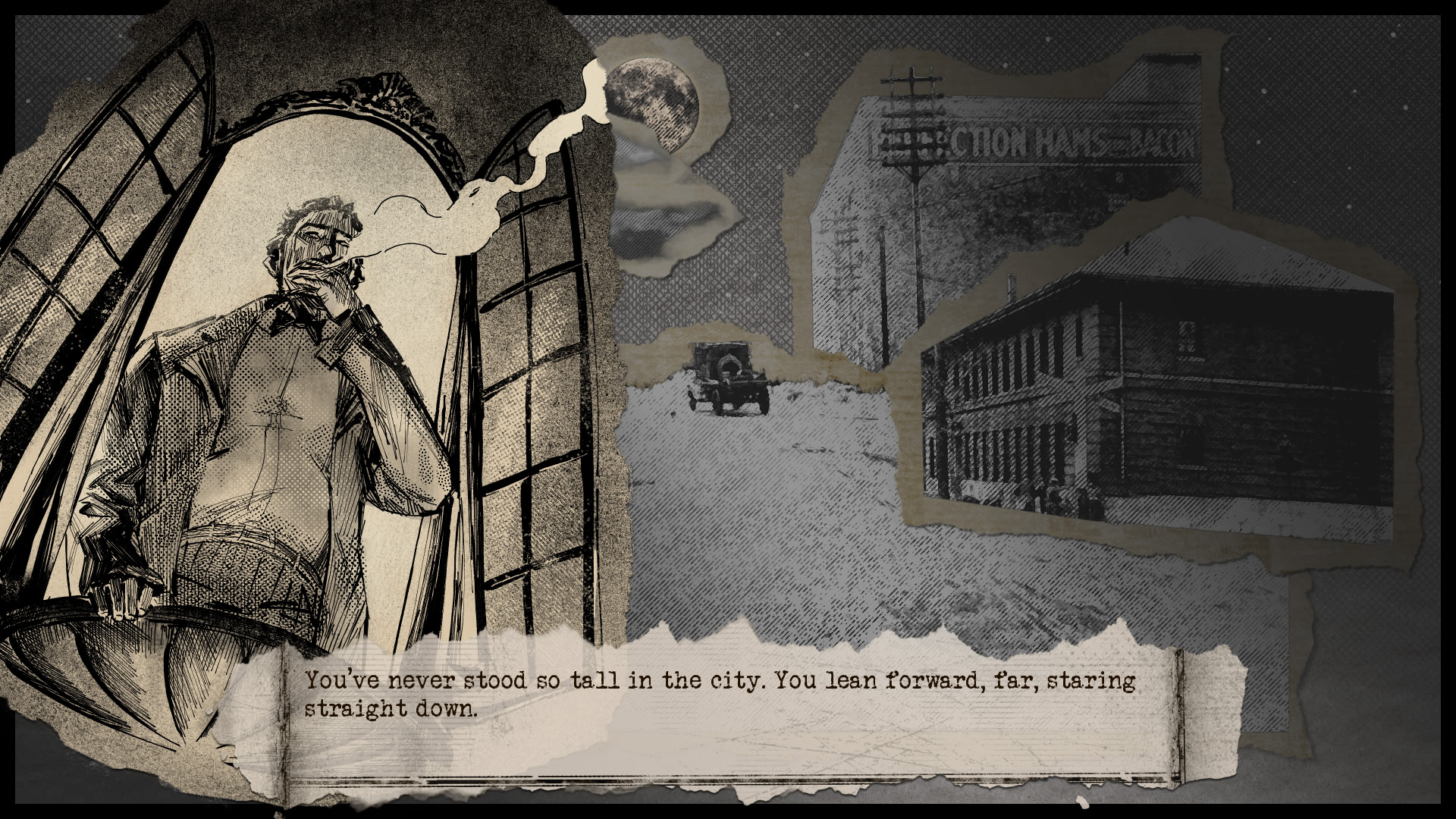 Toronto, 1928. Frostbitten and pious. Decay creeps just beneath the glittering splendour of the age. Work in a slaughterhouse and surrender to the atrophy of conscience, flesh, and reality itself. itch.io]