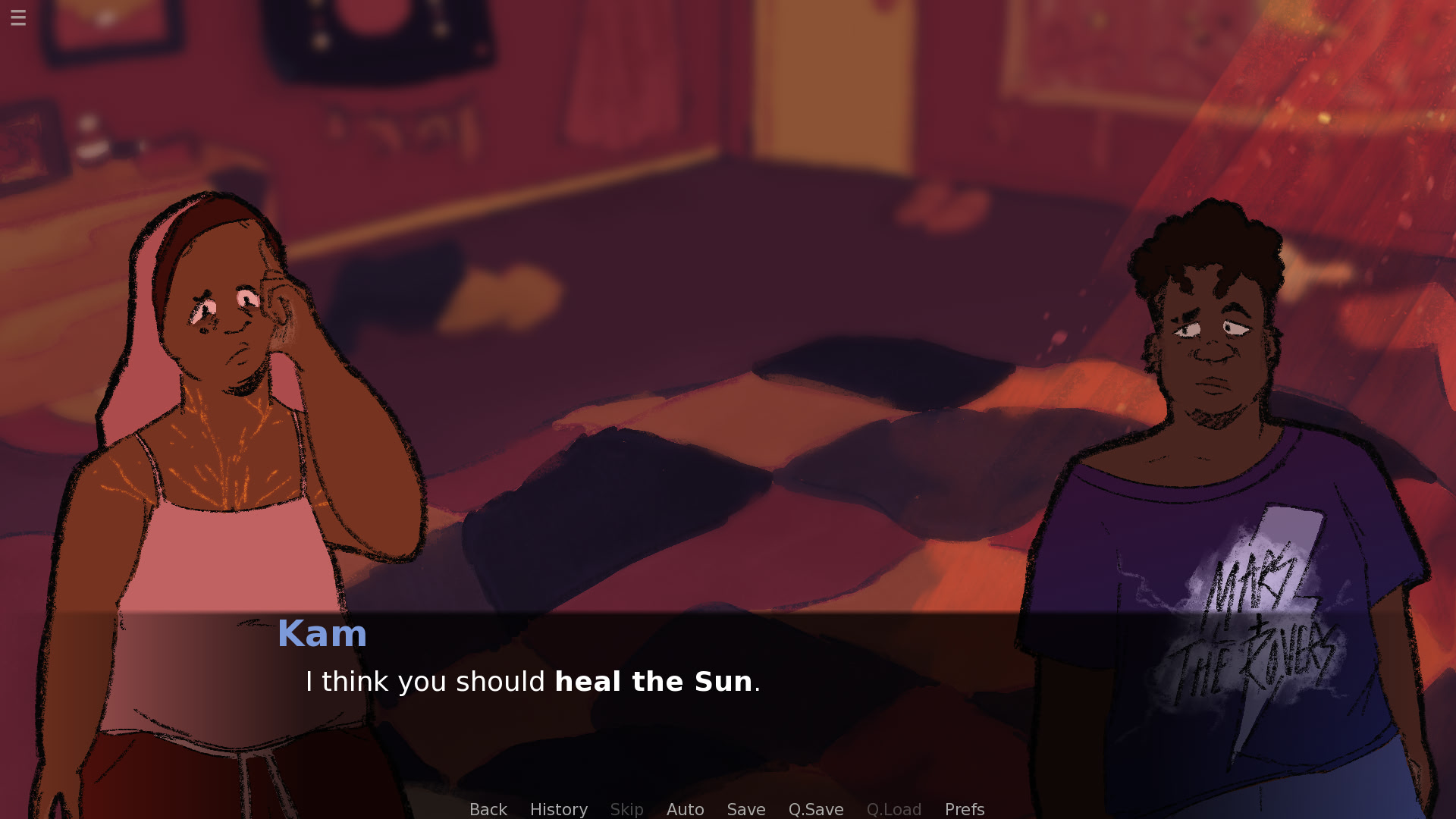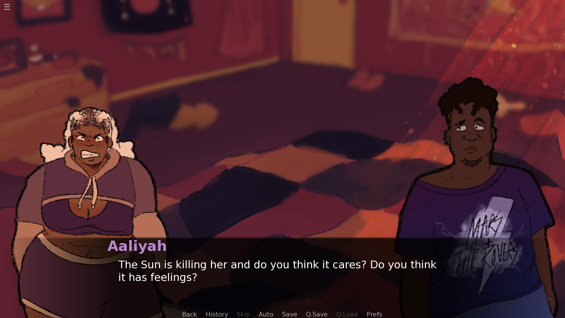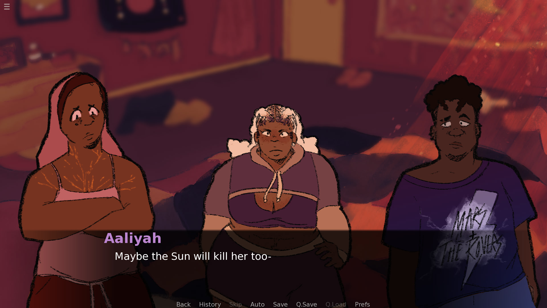 Every night, Bree comes closer and closer to the Sun, her body burning in her sleep. Some might say she's cursed, others say she's blessed with a rare opportunity to come face to face with the Sun. But now that the time is here, what will Bree do? Will she heed the advice of her caring girlfriend and hear the Sun out? Or will she mirror the confidence of her best friend and take a stand against the Sun? Either way, there's only one thing left to do...